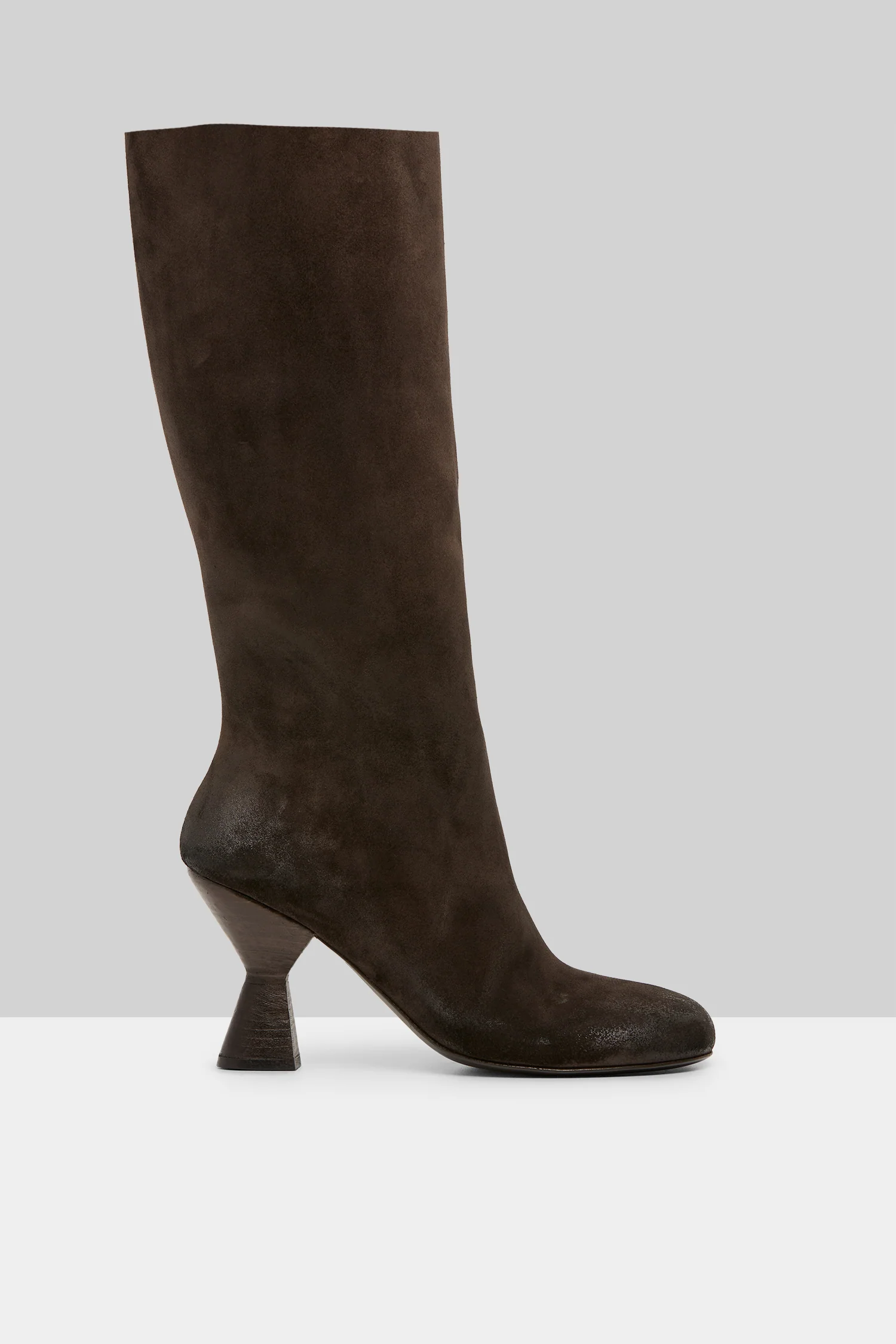 Zampetta Boot, creafted in reversed leather in a dark brown shade.